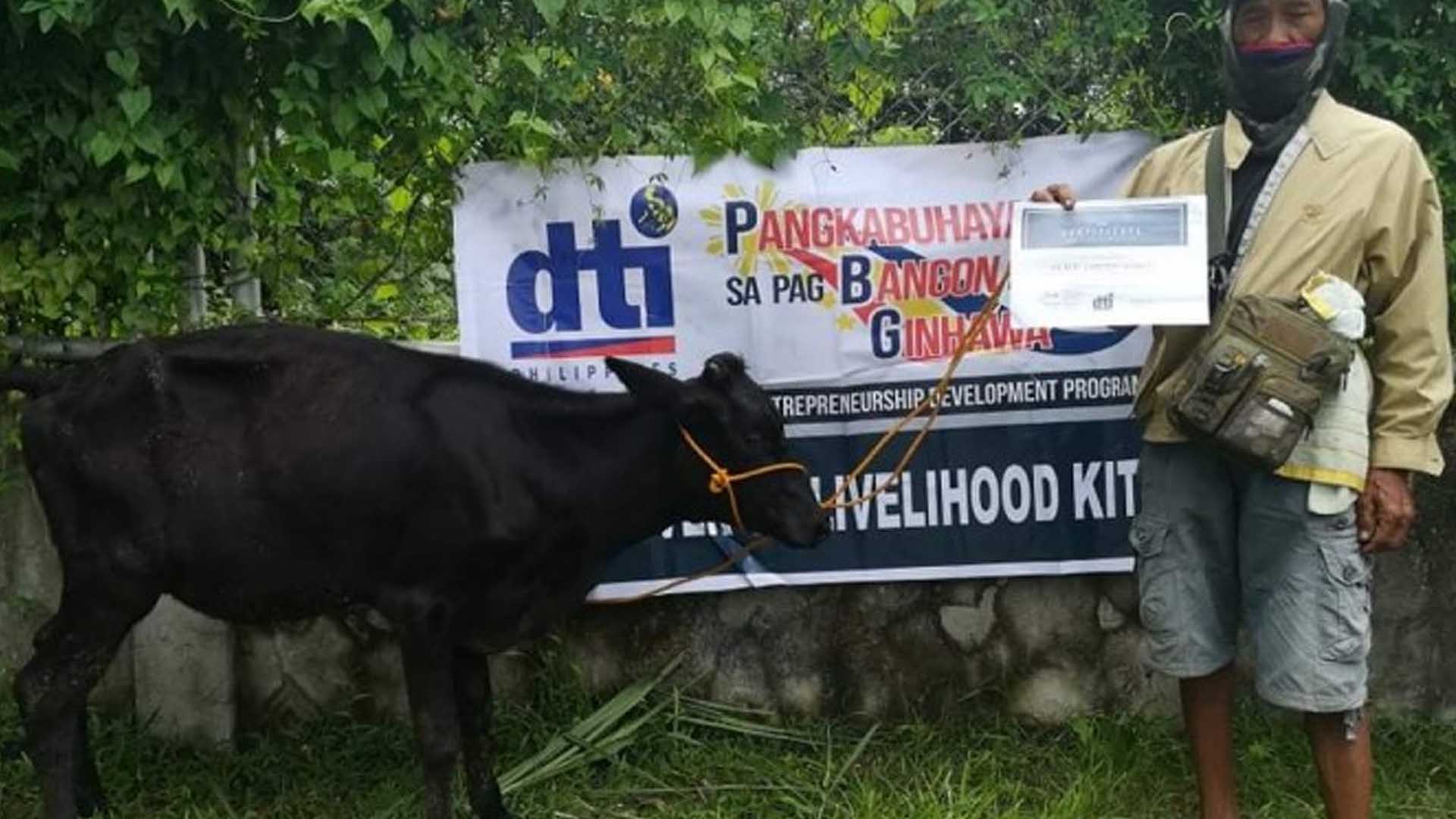 The livelihood kits, costing from PHP7,500 to PHP10,000 each, included goat and cattle dispersal and “sari-sari” store start-ups, but these were given either in kind or through a voucher that a beneficiary would have to claim from a DTI-accredited outlet.
