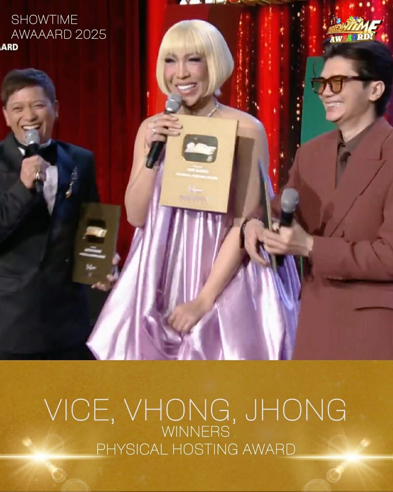 Vice Ganda received the “Glow Up Award,” while the hosting trio Vice, Vhong, and Jhong were honored with the “Physical Hosting Award” for their trademark high-energy interactions. Vhong also secured the “Words of Wisdom Award” for his now-classic line, “Crush is paghanga.”