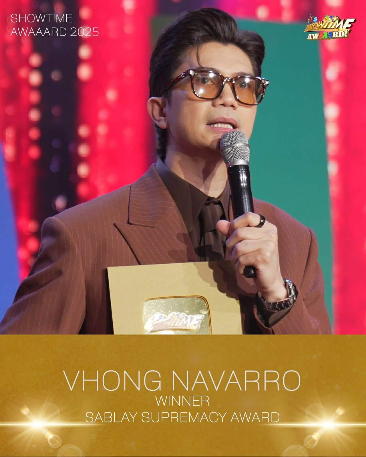 Among the early highlights was the “HA? Hakdog Award,” which went to Anne Curtis and Jhong Hilario for their on-air mispronunciations. The “Sablay Supremacy Award” was handed to Vhong Navarro for his consistent on-camera mishaps, while Jugs Jugueta claimed the “Dress in Piece Award” for his memorable fashion risks, including his widely shared Fuji Apple outfit.