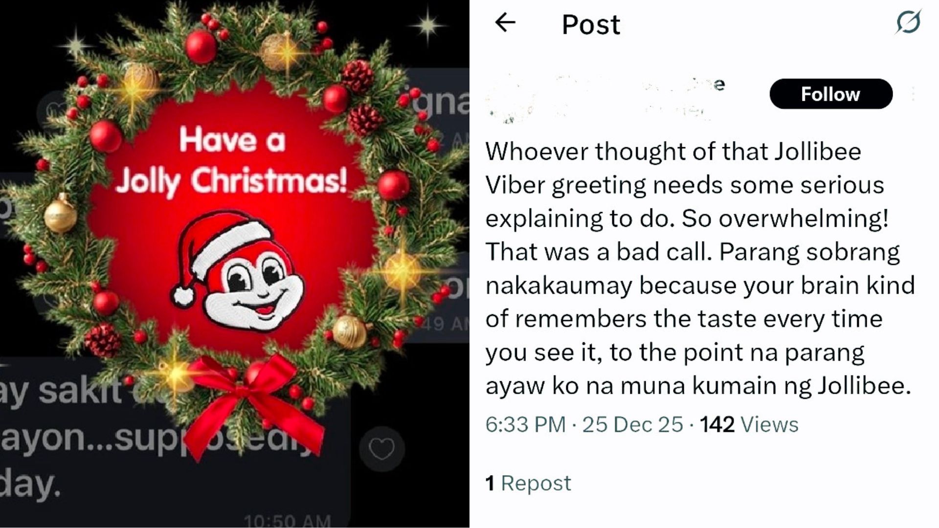 Over the holiday season, Jollibee-branded Christmas stickers and greetings became highly visible on Viber, appearing frequently in one-on-one chats and group conversations. While the campaign was clearly designed to spread festive cheer and brand recall, several users took to social media to complain that the brand’s presence felt excessive and intrusive.