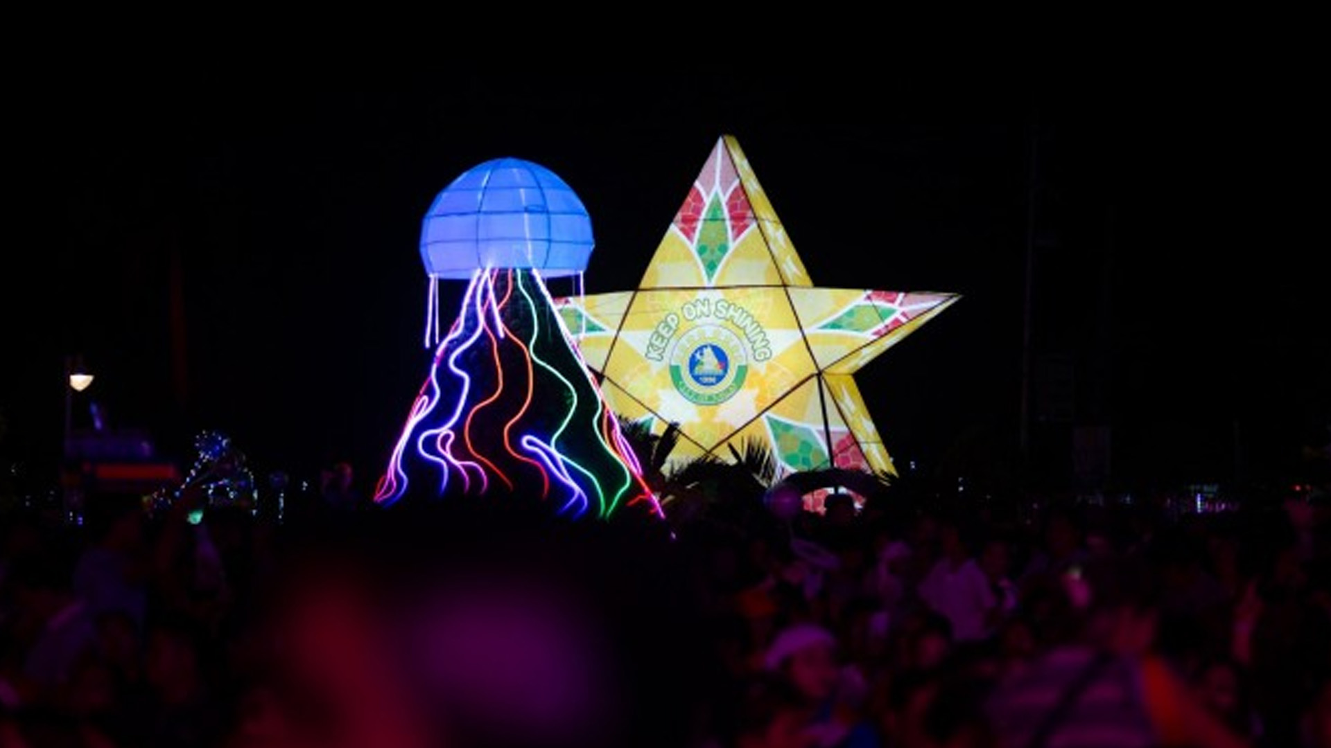 The set-up at the public plaza themed “Keep on Shining” features a jellyfish-shaped Christmas tree as the centerpiece, alongside a giant parol (lantern) and a Nativity scene.